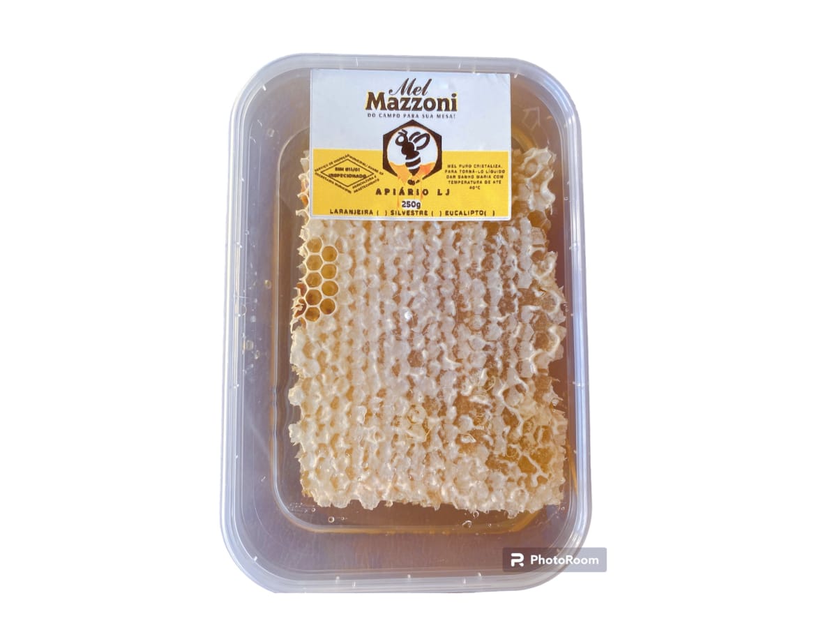 - Bandeja com lacre contendo 300 gramas de favo de abelha.